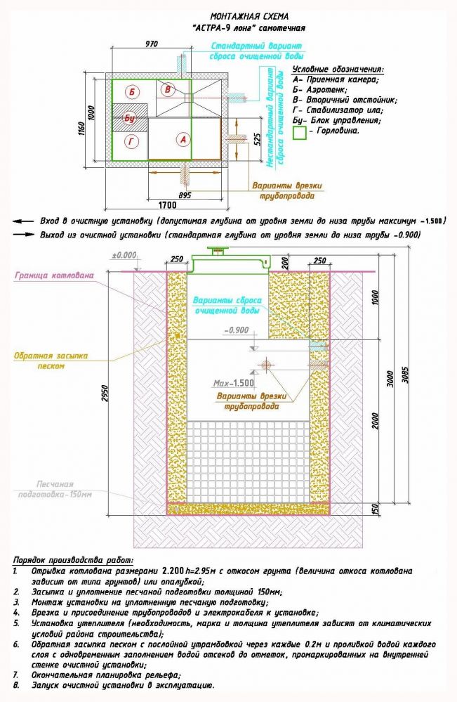 Насос для откачки: нет (самотечный сброс)